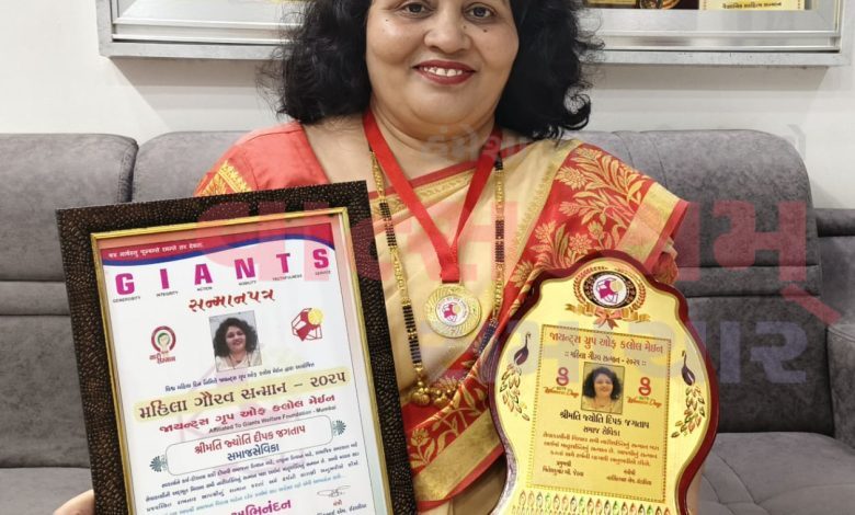રાજપીપલાના મહિલા અગ્રણી જ્યોતિ જગતાપને “મહિલા ગૌરવ સન્માન-2025 “એવોર્ડથી સન્માનિત કરાયા તેમની સામાજિક તથા અન્ય વિશિષ્ટ કામગીરીને બિરદાવી સન્માનપત્ર,…