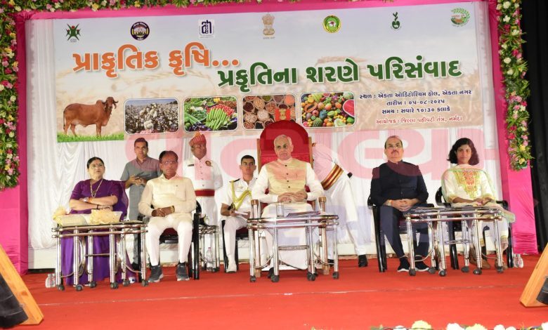 નર્મદા: એકતાનગર ખાતે “પ્રકૃતિના શરણે” પરિસંવાદ કાર્યક્રમમાં રાજ્યપાલ આચાર્ય દેવવ્રતજીએ પ્રગતિશિલ ખેડૂતમિત્રોને પ્રમાણપત્ર આપી સન્માનિત કર્યા રાજપીપલા :…