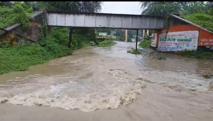 શિનોર તાલુકાના પુંનિયાદ ગામે સંરક્ષણ દિવાલ.તેમજ વર્ષો જૂનું ગરનાળુ ધરાશયી