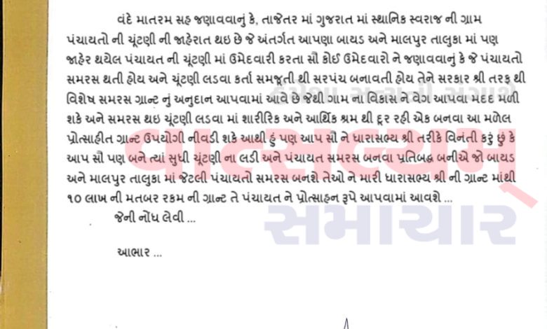 કિરીટ પટેલ બાયડ આગામી દિવસોમાં ગ્રામ પંચાયતોની ચૂંટણીઓ યોજવા જઈ રહી છે ત્યારે ગામડાઓમાં સૌહાર્દપૂર્ણ વાતાવરણ જળવાઈ રહે અને ચૂંટણી…