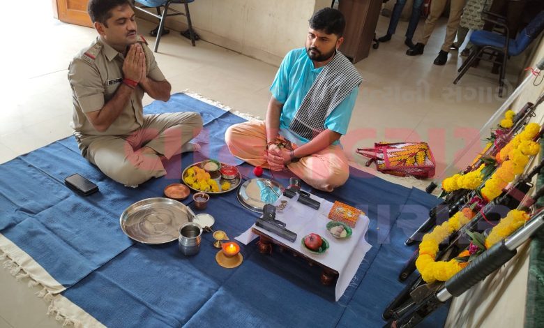 મુકેશ પરમાર,,નસવાડી નસવાડી પોલીસ સ્ટેશન ખાતે પોલીસ ઇન્સ્પેક્ટર આઈ.એમ.ઝાલા દ્વારા શસ્ત્ર પૂજન કરાયું હતું દશેરા ના પાવન અવસરે નસવાડી પોલીસ…