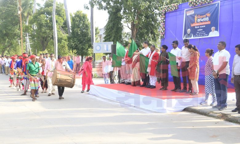 મુકેશ પરમાર,,નસવાડી 24 વર્ષ જનવિશ્વાસ સેવા અને સમર્પણના વિકાસ સપ્તાહ યાત્રા અંતર્ગત નસવાડી ના ભાખા મુકામે યાત્રા નું તાલુકા માં…