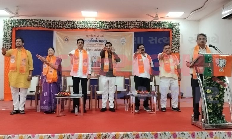 મુકેશ પરમાર,,,નસવાડી છોટાઉદેપુરના દરબાર હોલ ખાતે ભારતીય જનતા પાર્ટી છોટાઉદેપુર જિલ્લા દ્રારા આત્મનિર્ભર ભારત સંકલ્પ અભિયાન અંતર્ગત જિલ્લા કાર્યશાળા યોજવામા…