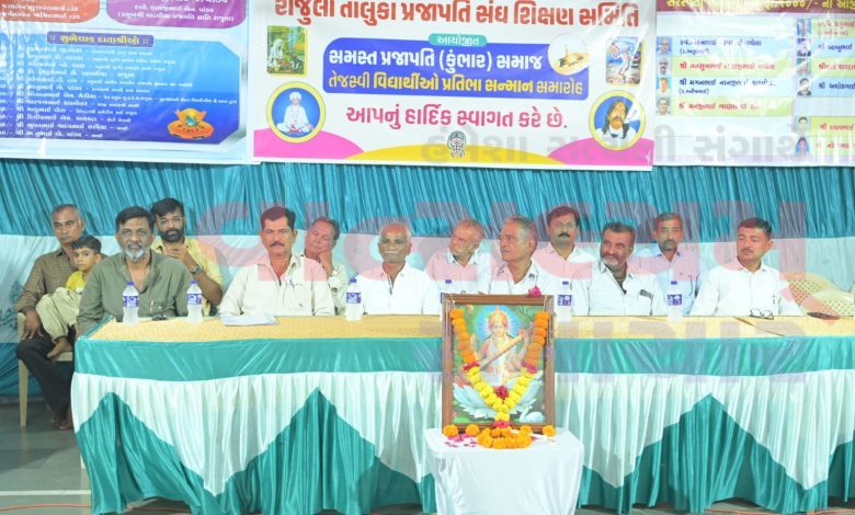 યોગેશ કાનાબાર રાજુલા રાજુલા શહેરમાં શ્રી સમસ્ત પ્રજાપતિ કુંભાર સમાજ રાજુલાનું સ્નેહમિલન તેમજ નવમો તેજસ્વી વિદ્યાર્થીઓનો પ્રતિભા સન્માન સમારંભ કાર્યક્રમ…