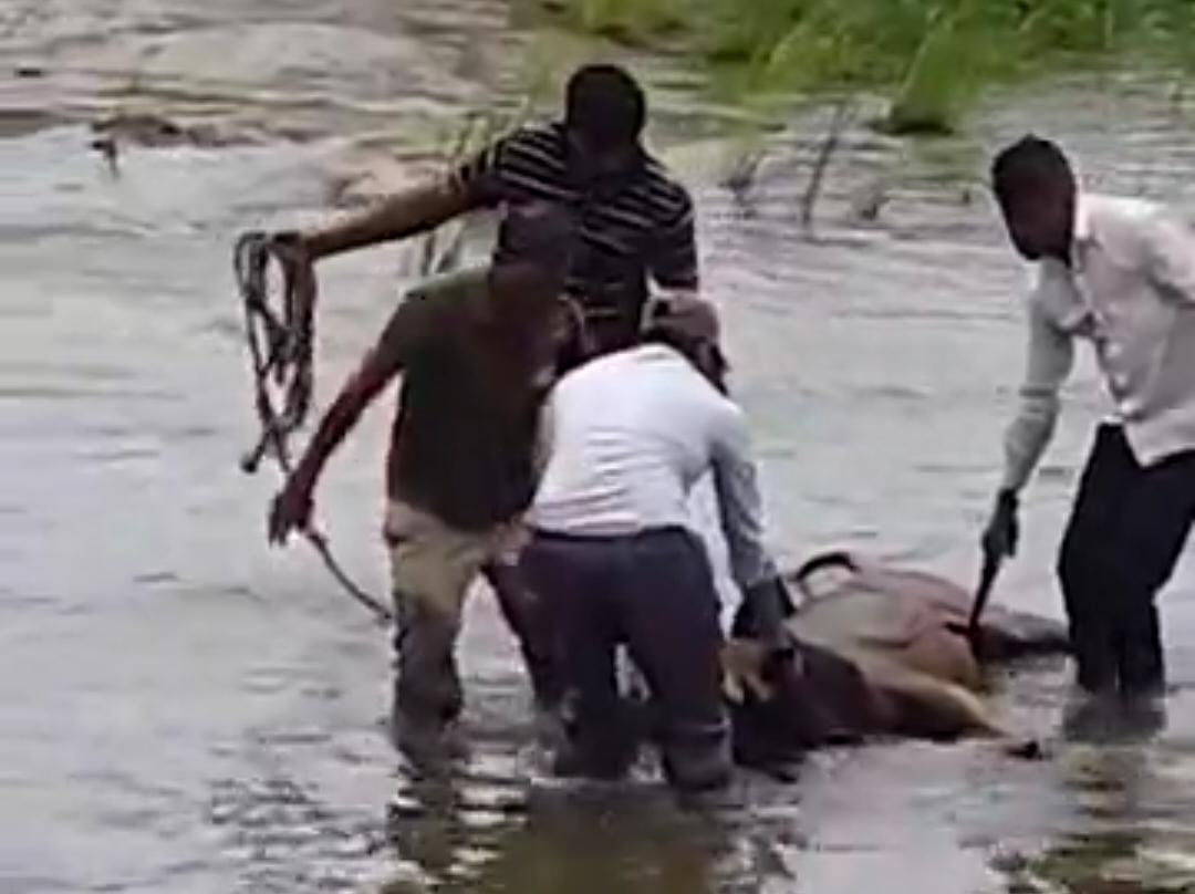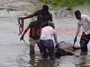 ખેતરમાં લગાવેલા વીજશોક થી સિંહ નું મોત.પુર માં તણાઈ જય તો પુરાવાનો નાશ થઈ જાય તેમ માની રાવલ નદી માં સિંહ નો મૃત દેહ ફેંકી દીધો