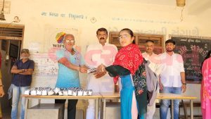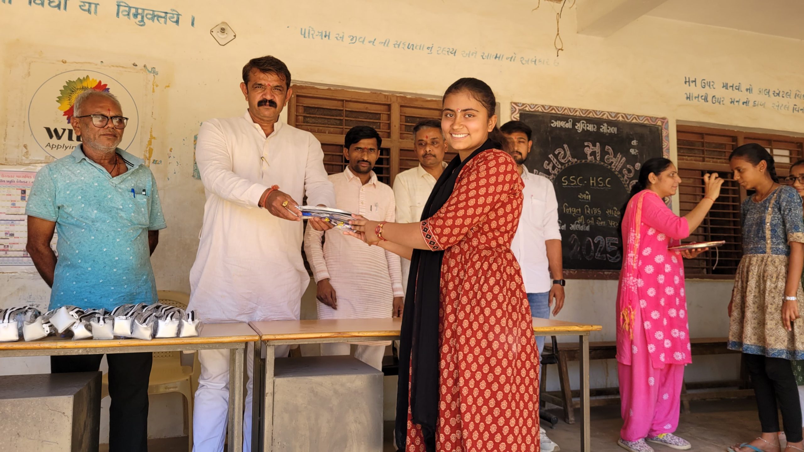 નખત્રાણા ,તા-૨૭ ફેબ્રુઆરી : SSC-HSC બોર્ડ પરીક્ષાના પ્રથમ દિવસે શ્રી સારસ્વતમ્ સંચાલિત પુંજાભાઈ આણંદજી હાઈસ્કૂલ, નિરોણા ખાતે પરીક્ષાર્થીઓ માટે બોર્ડ પરીક્ષા શુભેચ્છાઓનુ વિશેષ આયોજન કરવામાં આવેલ હતું. શાળાના આચાર્યશ્રી અને શિક્ષકો દ્વારા વિદ્યાર્થીઓનું કુમકુમ તિલક કરી, મીઠું મોઢું કરાવી, ટ્રાન્સપરન્ટ પેડ, પાઉચ, કલમ અને ચોકલેટ આપી પ્રસન્નતા યુક્ત માહોલમાં શુભકામનાઓ પાઠવવામાં આવેલ હતી.વિદ્યાર્થીઓ માટે શૈક્ષણિક કીટ અને ચોકલેટનું વિતરણ કરવામાં આવ્યું, જેમાં વરિષ્ઠ શિક્ષક બાબુભાઈ પરમાર, અલ્પેશભાઈ જાની તથા શિવ શક્તિ ટ્રાવેલ્સના મયુરભાઈ ઓઝાનો સહયોગ સાપડ્યો હતો.આ બોર્ડ પરીક્ષા શુભેચ્છા કાર્યક્રમમાં શાળાના આચાર્ય ડૉ. વી.એમ. ચૌધરી સાહેબ સહિત શિક્ષકો બાબુભાઈ પરમાર, અલ્પેશભાઈ જાની, આશાબેન પટેલ, કિશનભાઈ પટેલ, રમેશભાઈ ડાભી, ભૂમિબેન વોરા અને અલ્પાબેન ગોસ્વામી ઉપસ્થિત રહ્યા હતા. શાળાના આચાર્યશ્રી તેમજ શિક્ષકોએ તમામ પરીક્ષાર્થીઓને ઉત્તમ પરીક્ષા અને શ્રેષ્ઠ પરિણામ માટે શુભેચ્છાઓ પાઠવેલ હતી.