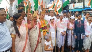 ખેરગામ:ખેરગામ બિરસા મુંડા સર્કલ પાસેથી ધારા સભ્ય નરેશભાઈ પટેલના અધ્યક્ષસ્થાને તિરંગા યાત્રા નીકળી ખેરગામ રામજી મંદિર મેઇન બજાર ઝંડા ચોક ગાંધી સર્કલ થઈ આંબેડકર સર્કલ ખાતે સંપન્ન થઈ હતી.આ ભવ્ય તિરંગા યાત્રામાં ભારતમાતાના નારાઓ સાથે સ્વતંત્રતા સેનાનીઓની વેશભુષા ધારણ કરેલા બાળકો, તેમજ પોલીસકર્મીમાં ભારે ઉત્સાહ જોવા મળ્યો હતો.ખેરગામ તાલુકા વહીવટી તંત્ર જનતા માધ્યમિક શાળા અને પ્રાથમિક શાળાના વિદ્યાર્થીઓ મહિલાઓ,યુવાનો સહિત દરેક ક્ષેત્ર સાથે સંકળાયેલા મહાનુભાવો સાથે ખેરગામ સહિત તાલુકાના સરપંચો અગ્રણીઓએ મોટી સંખ્યામાં ઉપસ્થિત રહી તિરંગા યાત્રાને સફળ બનાવી હતી.તિરંગા યાત્રાનું ઠેર ઠેર ફૂલ વર્ષા વરસાવીને સ્વાગત કરવામાં આવ્યું હતું.તિરંગા યાત્રા કાઢવાનો મુખ્ય હેતુ લોકોમાં રાષ્ટ્રપ્રેમ અને એકતાની ભાવના જાગૃત કરવાનું હોવાનું જણાવ્યું હતું.