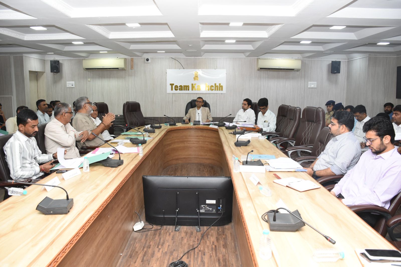 ભુજ : કચ્છ કલેક્ટર આનંદ પટેલના અધ્યક્ષસ્થાને તેમજ ચૂંટાયેલા પ્રતિનિધિશ્રીઓ તથા વહીવટીતંત્રના ઉચ્ચ અધિકારીશ્રીઓની હાજરીમાં કલેક્ટર કચેરી ભુજ ખાતે સંકલન સહ ફરિયાદ સમિતિની બેઠક યોજાઈ હતી. કચ્છ જિલ્લાના પ્રજા હિતના પ્રશ્નો જે પ્રતિનિધિશ્રીઓ દ્વારા રજૂ કરવામાં આવ્યા છે તેનો તાત્કાલિક ઉકેલ આવે તે દિશામાં કામગીરી કરવા માટે કલેક્ટરશ્રીએ સંબંધિત વિભાગના અધિકારીશ્રીઓને સૂચનાઓ સાથે અધિકારીશ્રીઓને માર્ગદર્શન આપ્યું હતું. વહીવટી વિભાગોએ જનપ્રતિનિધિશ્રીઓ સાથે સંકલનમાં રહી દરેક કામગીરી નિયત સમયમર્યાદામાં કરવા કલેક્ટરશ્રીએ તાકીદ કરી હતી.સંકલન બેઠકમાં માંડવી મતવિસ્તારના ધારાસભ્યશ્રી અનિરુદ્ધભાઈ દવેએ તાલુકામાં રોડ- રસ્તાઓ અને પુલોના સમારકામ તથા નિર્માણ, દબાણ હટાવ કામગીરીના પ્રશ્નો બાબતે રજૂઆત કરી હતી. આ સાથે દિવાળી વેકેશન દરમિયાન માંડવી બીચ પર રમતગતના સાધનોની યોગ્ય ફાળવણી કરવા તથા પર્યટકોની મુલાકાતના કારણે ઉભી થતી ટ્રાફિકની સમસ્યા સામે યોગ્ય આયોજન કરવા રજૂઆત કરી હતી.ભુજના ધારાસભ્યશ્રી કેશુભાઇ પટેલ દ્વારા સિંચાઇના ડેમના સમારકામ, સુખપર- વાંઢ સિંચાઈના ડેમની કામગીરી તથા તાલુકામાં રોડ મરામતના પ્રશ્નોની રજૂઆતો કરવામાં આવી હતી. અબડાસાના ધારાસભ્યશ્રી પ્રદ્યુમ્નસિંહ જાડેજાએ નખત્રાણા ટાઉનહોલનું કામ ત્વરાએ શરૂ કરવા, માતાના મઢ ખાતે નર્મદાની લાઈન પસાર કરવા, તાલુકામાં પશુધનની બીમારી અને મૃત્યુ સામે મળવાપાત્ર થતું વળતર, માંડવીથી ઓખા રો-રો ફેરી શરૂ કરવા બાબતે, નખત્રાણા ખાતે જમીન માપણી, નલીયા સરકારી કોલેજમાં યુનિવર્સિટીના પરીક્ષા કેન્દ્રો રાખવા, દયાપર સરકારી કોલેજ, જાબરી ડેમ, તલ-તૈયારી ડેમ તથા છારી-ફૂલાય ડેમ નિર્માણ, કનોજ, ઉખેડા, નરા, ખારડીયા, ખીરસરા-નેત્રામાં વીજ સબ સ્ટેશનોની સ્થિતિ, નખત્રાણા બાયપાસ, વીજ વાયર તથા થાંભલાઓ બદલવાની કામગીરી, સૂર્યોદય યોજના, વિજ કનેક્શનો, નાની સિંચાઈ ડેમ અને કેનાલ રીપેરીંગ તથા સાફ સફાઈ, વિદ્યાર્થીઓ માટે બસ સુવિધા વગેરે સંબંધિત પ્રશ્નોની રજૂઆત કરી હતી. આ સાથે તાલુકાના અગ્નિવીર ટ્રેનીંગ લીધેલા જવાનો માટે નોકરીની તકો મળી રહે તથા નિવૃત જવાનોને હથિયારના લાયસન્સ બાબતે મૌખિક રજૂઆત કરી હતી.સંકલન બેઠકમાં જિલ્લા વિકાસ અધિકારીશ્રી ઉત્સવ ગૌતમ, નિવાસી અધિક કલેક્ટરશ્રી ડી.પી.ચૌહાણ, સર્વે પ્રાંત અધિકારીશ્રીઓ અને કચ્છ વહીવટીતંત્રના વિવિધ વિભાગોના શીર્ષ અધિકારીશ્રીઓ ઉપસ્થિત રહ્યા હતા.