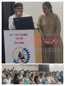 સરકારી પોલીટેકનિક વલસાડ ખાતે સરકાર શ્રી દ્વારા નિર્દેશિત વિકાસ સપ્તાહ ૨૦૨૪ સંદર્ભે સેમીનારનું આયોજન સંસ્થાના આચાર્યા શ્રી મતી રિંકું શુકલા ના માર્ગદર્શન હેઠળ કરવામાં આવ્યું. જેમાં મુખ્ય મહેમાન તરીકે વલસાડ રેવન્યુ ડિપાર્ટમેન્ટ ના ઇન્સ્પેક્ટર ઓફ રજીસ્ટ્રેશન દિવ્યેશ પટેલ હાજર રહ્યા. એમણે ભારત સરકારની સિદ્ધિઓ તેમજ માનનીય પ્રધાન મંત્રી શ્રી નું વિકસિત ભારતનું સપનું સાકાર કરવા માટે યુવાનોની ભાગીદારી અને ભૂમિકા વિષય તેમજ સરકાર શ્રી ની વિવિધ યોજનાઓ પર પોતાના વિચારો રજૂ કર્યા. જેમાં ખૂબ મોટી સંખ્યામાં સંસ્થાના સ્ટાફ તેમજ વિદ્યાર્થીઓ હાજર રહ્યા. સમગ્ર કાર્યક્રમનું સફળ સંચાલન સંસ્થાનું NSS લોકલ યુનિટ દ્વારા કરવામાં આવ્યું.
