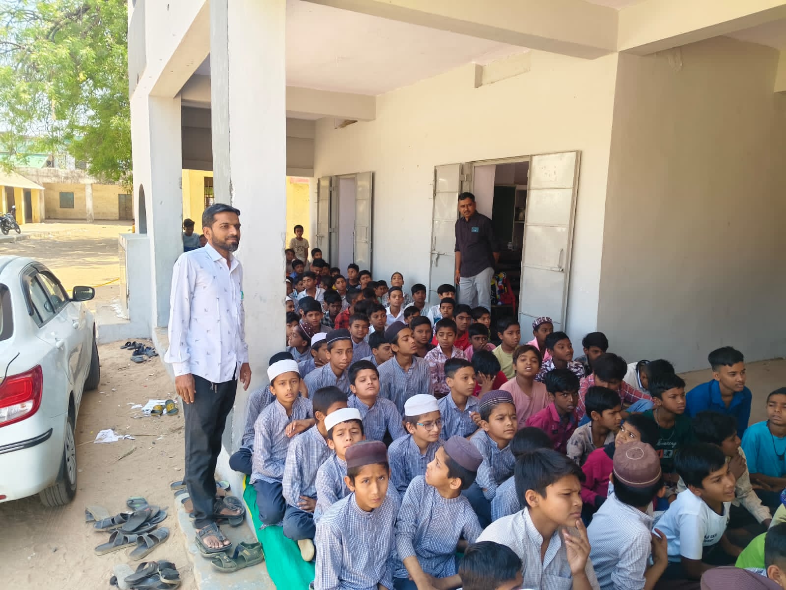 આજરોજ યજમાનશાળા કાલોલ કુમારને આંગણે કાલોલ ની ઉર્દુ શાળા મહેમાન બની હતી કાલોલ કુમાર શાળાના ધોરણ છ થી આઠ ના વિદ્યાર્થીઓએ કાલોલ ઉર્દુ શાળાના વિદ્યાર્થીઓને ગુલાબ આપી સ્વાગત કર્યું હતું કાલોલ કુમાર શાળાના બાળકોએ સાંસ્કૃતિક કાર્યક્રમની ઝાંખી આપતો પ્રોગ્રામ રજૂ કર્યો હતો તેમ જ કુમાર શાળામાં ચાલતી વિવિધ શૈક્ષણિક પ્રવૃત્તિઓ સ્માર્ટ બોર્ડ નો ઉપયોગ તેમજ કેટલીક શૈક્ષણિક અને સહ અભ્યાસિક પ્રવૃત્તિઓનું નિદર્શન નિહાળ્યું હતું એકંદરે બાળકોમાં સહભાગીદારિતા, સામાજિક ઐક્ય ને સૌહાર્દ પૂર્ણ શૈક્ષણિક અભિગમ કેળવાય એ આ પ્રોગ્રામ નો હેતુ સિદ્ધ કર્યો હતો.