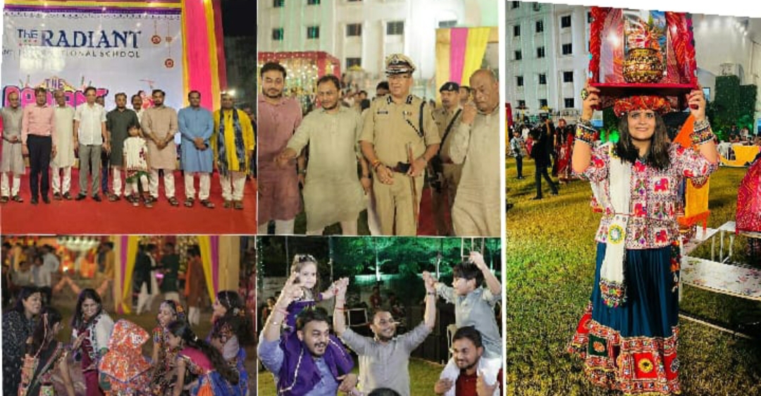 સ્કૂલના કેમ્પસમાં પાંચ દિવસ નવરાત્રી રાસ ગરબા નો ભવ્ય સેલિબ્રેશન થયેલ હતું.સુરત જહાંગીરબાદ ઉગત કેનાલ રોડ પર આવેલ ધ રેડિયન્ટ ઇન્ટરનેશનલ સ્કૂલ દ્વારા તા.૧ ને સોમવાર થી તા.૫ ને શનિવાર સુધી ” ધ રેડિયન્ટ રમઝટ 2k24 ” નવરાત્રી મહોત્સવનું આયોજન કરવામાં આવ્યું હતું. જેમાં પ્રથમ દિવસે મુખ્ય મહેમાન તરીકે શહેર પોલીસ કમિશનર અનુપમ ગેહલોત ઉપસ્થિત રહ્યા હતા. તેમણે શાળામાં ઉપસ્થિત ૪ હજારથી પણ વધુ વિદ્યાર્થીઓ અને વાલીઓને સંબોધિત કરતા યુવા પેઢી ડ્રગ્સ જેવા વ્યસનથી દૂર રહે તે માટે ‘ નો ડ્રગ્સ ‘ કેમપેઈન થી અવગત કરવા સાથે ટ્રાફિક અવરનેસ સાથે શિસ્તબંધ સુરત બનાવવા અપીલ કરી હતી. વિદ્યાર્થીઓમાં સંસ્કૃતિનું સિંચન થાય તે માટે ધ રડિયન્ટ રમઝટનું ભવ્ય આયોજન કરવા માટે પોલીસ કમિશનરે શાળાના ફાઉન્ડર રામજીભાઈ માંગુકિયા ને અભિનંદન પાઠવ્યા હતા. સાથે સાથે શાળાના ટ્રસ્ટી જીગ્નેશ માંગુકિયા અને મેનેજિંગ ડિરેક્ટર કિશન માંગુકિયા ને શૈક્ષણિક ક્ષેત્રે અવિરત ક્રાંતિ અને ઉચ્ચતમ શિખરો પાર કરે તેવી શુભેચ્છા પાઠવી હતી. ધ રેડિયન્ટ રમઝટના બીજા દિવસે સુરત મહાનગરપાલિકા મેયર, ઉપસ્થિત રહ્યા હતા. આમ પાંચ દિવસના મહોત્સવ ની ભવ્ય ઉજવણી થઈ હતી અને વિદ્યાર્થીઓને વાલીઓ તેમજ સ્કૂલ સ્ટાફના તમામ લોકો રાસ ગરબા રમીને રમઝટ બોલાવી હતી.