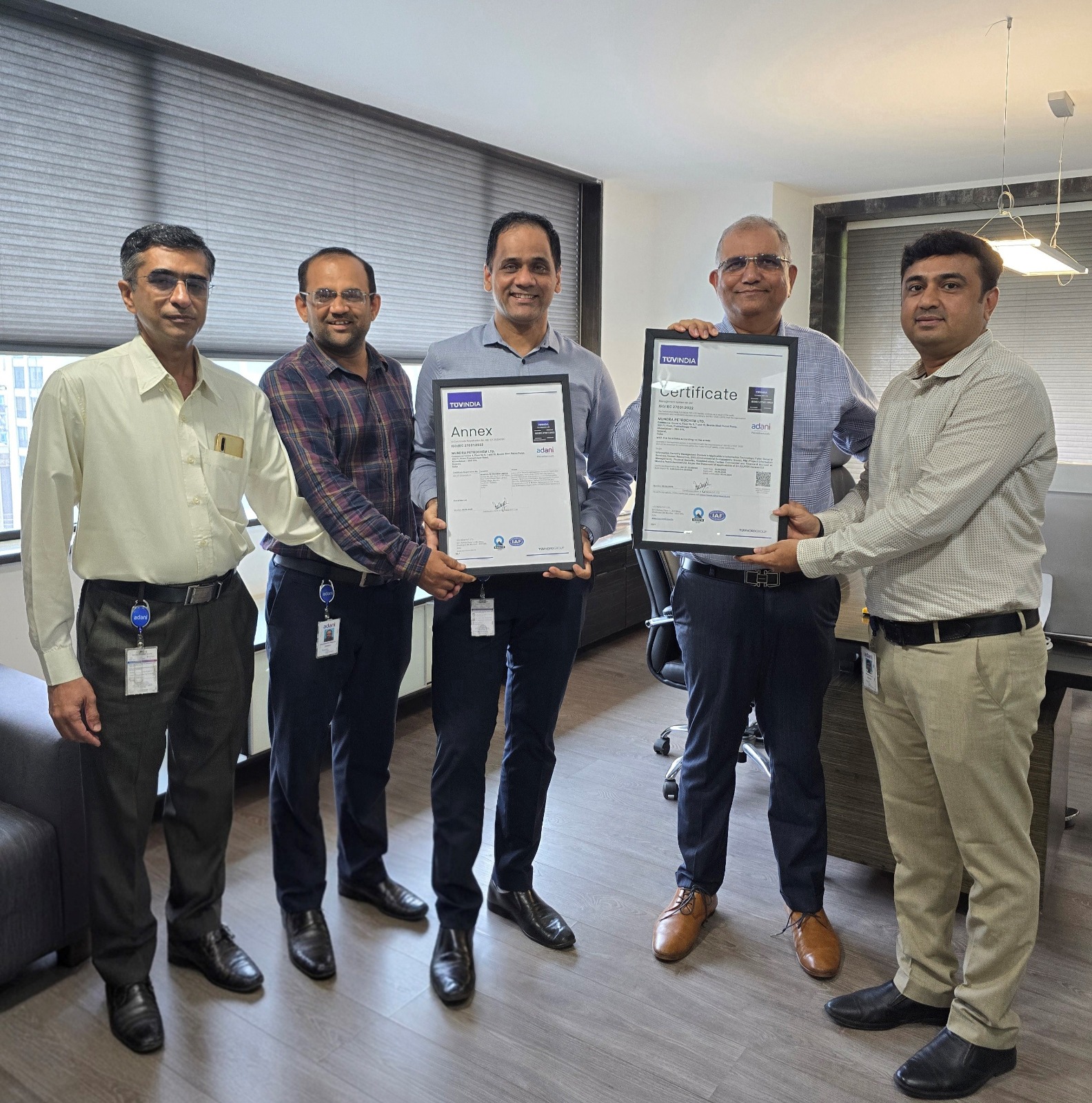 સખત ઓડિટ પછી આપવામાં આવેલ આ પ્રમાણપત્ર, મુન્દ્રા પેટ્રોકેમની ક્રોસ-ફંક્શનલ ટીમોના સહયોગી પ્રયાસોને પ્રતિબિંબિત કરે છે.જેમાં સાયબર સુરક્ષા, IT, HR, એડમિન, PIM, ESG, ટેક્નો-કોમર્શિયલ, ભૌતિક સુરક્ષા અને નાણાકીય વિભાગોનો સમાવેશ થાય છે. કંપનીના સુવ્યવસ્થિત અભિગમે તેને નોંધપાત્ર ગતિ અને ચોકસાઈ સાથે પ્રમાણપત્ર પ્રક્રિયા પૂર્ણ કરવામાં સક્ષમ બનાવ્યું.