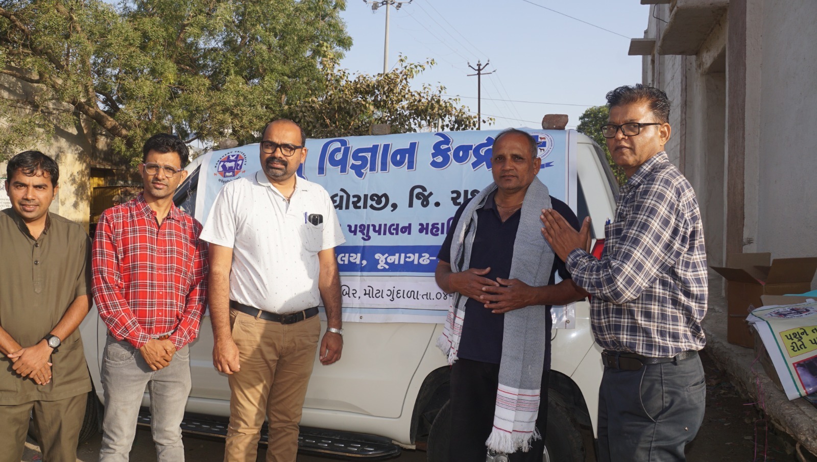 પશુ વિજ્ઞાન કેન્દ્ર, ભુતવડ અને પશુચિકિત્સા અને પશુપાલન મહાવિદ્યાલય, કામધેનુ યુનિવર્સીટી, જૂનાગઢ દ્વારા મોટા ગુંદાળા ગામ ખાતે પશુ આરોગ્ય અને સારવાર શિબિરનું આયોજન કરવામાં આવ્યું હતું. આ શિબિરમાં મોટા ગુંદાળા ગામ અને કામધેનુ ગૌશાળા, મોટા ગુંદાળાના કુલ ૨૬૬ પશુઓને સારવાર આપવામાં આવી હતી. જેમાં ૨૫૧ પશુઓને કૃમિનાશક દવા આપવામાં આવી હતી આ ઉપરાંત પશુચિકિત્સા અને પશુપાલન મહાવિદ્યાલય, કામધેનુ યુનિવર્સીટી, જૂનાગઢના નિષ્ણાંત અને મદદનીશ પ્રાધ્યાપકશ્રી ડો.સુરેશ કુમાર માવદીયા (મેડીસીન), શ્રી ડો.જીગ્નેશ વડાલીયા (સર્જરી) અને શ્રી ડો.દેવાશીભાઈ બોરખતરિયા (ગાયનેકોલોજી) દ્વારા ૧૫ પશુઓની તપાસ કરીને તેમની સારવાર કરવામાં આવી હતી. ઉક્ત સમગ્ર કાર્યક્રમના સફળ આયોજન અને સંચાલન બદલ મોટા ગુંદાળા ગામના સરપંચશ્રી ગોપાલભાઈ હીરપરા, પશુ વિજ્ઞાન કેન્દ્ર, ભુતવડના નોડલ અધિકારીશ્રી ડો.સુરેન્દ્ર સાવરકર, પશુચિકિત્સા મહાવિદ્યાલય, જૂનાગઢના આચાર્યશ્રી ડો.પી.એચ.ટાંક, સહ પ્રાધ્યાપકશ્રી ડો.દીનદયાલ અને પશુધન નિરીક્ષકશ્રી અંકુર દેસાઈ દ્વારા જહેમત ઉઠાવવામાં આવી હતી. તેમ આચાર્યશ્રી, પશુચિકિત્સા અને પશુપાલન મહાવિદ્યાલય, જૂનાગઢની યાદીમાં જણાવવામાં આવ્યું છે