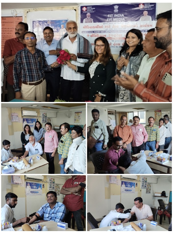 “ફિટ ઈન્ડિયા ફિટ મીડિયા” અભિયાન અંતર્ગત અરવલ્લી જિલ્લા માહિતી વિભાગ, ઈન્ડિયન રેડક્રોસ સોસાયટી (અરવલ્લી જિલ્લા શાખા) અને ગુજરાત સરકારના સંયુક્ત ઉપક્રમે મીડિયાકર્મીઓ માટે વિશેષ હેલ્થ ચેક-અપ કેમ્પનું આયોજન કરવામાં આવ્યું હતું.આ કેમ્પ ઈન્ડિયન રેડક્રોસ સોસાયટી, મોડાસા ખાતે યોજાયો હતો.આ કાર્યક્રમમાં અરવલ્લી જિલ્લાના બહોળી સંખ્યામાં પત્રકારો તથા મીડિયાકર્મીઓએ ઉત્સાહપૂર્વક ભાગ લીધો હતો અને તેમનું બોડી ચેક-અપ કરાવ્યું હતું. આવા મેડિકલ કેમ્પ દ્વારા મીડિયાકર્મીઓના સ્વાસ્થ્યનું ધ્યાન રાખવું તેમજ સ્વસ્થ જીવનશૈલીને પ્રોત્સાહન આપવાનો મહત્વપૂર્ણ હેતુ સિદ્ધ થયો છે.કાર્યક્રમના અધ્યક્ષસ્થાને અરવલ્લી જિલ્લા રેડક્રોસ ચેરમેન ભરતભાઈ પરમાર ઉપસ્થિત રહ્યા હતા. જિલ્લા માહિતી અધિકારી નિધિ જયસ્વાલ તેમજ મોટી સંખ્યામાં પત્રકારઓ અને મીડિયાકર્મીઓ આ કાર્યક્રમમાં જોડાઈને તેને સફળ બનાવ્યો હતો.આ પ્રસંગે રેડક્રોસ તથા માહિતી વિભાગ દ્વારા મીડિયાકર્મીઓના આરોગ્ય પ્રત્યેની જાગૃતિ અને સતત સેવાની ભાવનાને વધુ મજબૂત કરવાનો સંકલ્પ વ્યક્ત કરવામાં આવ્યો હતો.
