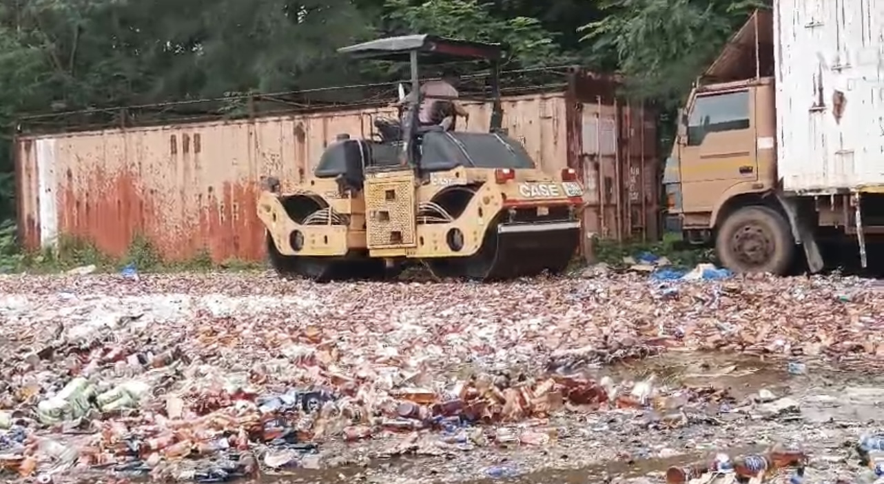ભરૂચ ડિવિઝન હેઠળના પોલીસ સ્ટેશનમાં ઝડપાયેલી પોણા ત્રણ લાખ દારૂની બોટલનો અધિકારીઓની હાજરીમાં નાશ કરાયો