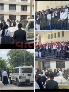 આ ઘટનાથી નારાજ વકીલ સમાજ આજે જિલ્લા કોર્ટ પરિસરમાં એકત્રિત થયો હતો. બાર એસોસિયેશન દ્વારા પોલીસ વિરુદ્ધ જોરદાર સૂત્રોચ્ચાર સાથે વિરોધ દર્શાવવામાં આવ્યો. તમામ વકીલો કામકાજથી અડગા રહીને કોર્ટની કાર્યવાહીનો બહિષ્કાર કર્યો હતો.વિરોધ દરમિયાન કોર્ટ પરિસરમાં આવેલી પોલીસે હાજરી આપતા વકીલો ઉગ્ર બની ગયા હતા અને પોલીસે કોર્ટ બહાર ધકેલી દેવામાં આવી હતી.બાર એસોસિયેશને સ્પષ્ટ કર્યું છે કે વકીલ પર થયેલા હુમલામાં સામેલ પોલીસ અધિકારી અને કર્મચારીઓ વિરુદ્ધ કડક કાર્યવાહી કરવામાં આવેં તેવી માંગ સેવાઈ રહી છે