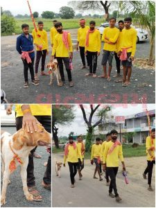 મેઘરજના રેલ્લાવાડા ખાતે સંઘ સાથે કૂતરો પણ અંબાજી પદયાત્રામાં જોવા મળ્યા