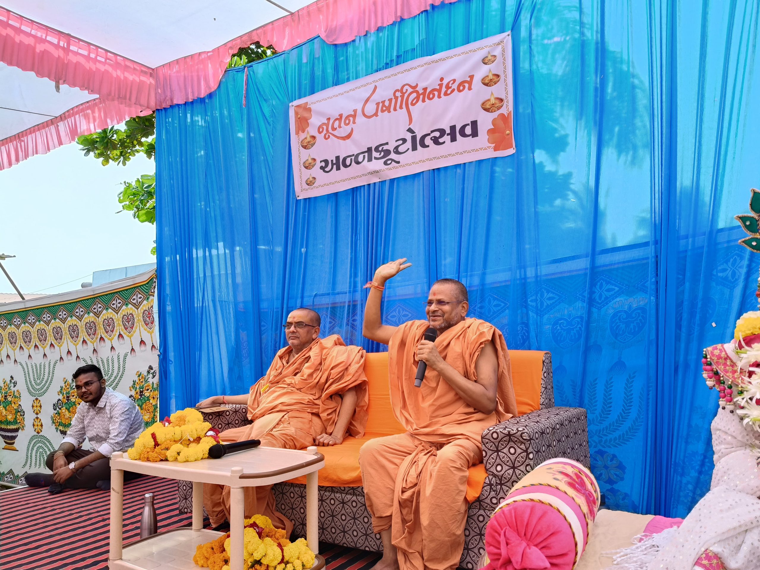 વિક્રમ સંવત 2082 નું નૂતન વર્ષના આરંભે સમગ્ર દેશ ભરમા તા.22 ઓક્ટોબર બુધવારના રોજ ઉજવણી કરવામાં આવી હતી. સાંસ્કૃતિક, ધાર્મિક, પ્રાકૃતિક અને ભૌગોલિક વૈવિધ્ય ધરાવતા ભારતમાં અલગ-અલગ રાજ્યમાં અલગ-અલગ દિવસે નવું વર્ષ ઉજવવામાં આવે છે. તેમજ ગુજરાતમાં વસતાં વિવિધ સમુદાયોમાં પણ એક કરતાં વધુ નવાં વર્ષ ઊજવાય છે.ત્યારે હાલોલ ગોધરા બાયપાસ રોડ પર આવેલ શ્રી સ્વામિનારાયણ નિષ્ઠા વિદ્યામંદિર ખાતે નવા વર્ષને લઇ ભવ્ય અન્નકૂટ યોજાયો હતો.જેમાં હાલોલ ગોધરા બાયપાસ રોડ પર આવેલ શ્રી સ્વામિનારાયણ નિષ્ઠા વિદ્યામંદિર જ્યોત ખાતે દર વર્ષની જેમ આ વર્ષે પણ સમગ્ર દેશવાસીઓની ઉન્નતિ પ્રગતિ અને સુખ સમૃદ્ધિ તેમજ આરોગ્યમય સુખદાય જીવન માટે ભવ્ય અન્નકૂટનું આયોજન કરવામાં આવ્યું હતું.જેમાં મંદિર પરિસર ખાતે બુધવારના રોજ સભા તેમજ મહાઆરતી યોજાઈ હતી.આ પ્રસંગે અન્નકૂટમાં વિવિધ વાનગીઓનો થાળ ઠાકોરજીને ધરાવવામાં આવ્યો હતો.જેમાં વહેલી સવારથી જ મોટી સંખ્યામાં ભાવિક ભક્તો અન્નકૂટના દર્શન કરી ભગવાન સામે શીશ ઝુકાવી આશીર્વાદ મેળવી ધન્યતા અનુભવી હતી.જ્યારે શ્રી સ્વામિનારાયણ મંદિરના સંત શ્રી સાધુ કેશવ સ્વરૂપદાસજી મહારાજ,સંત શ્રી સાધુ સંત સ્વામી મહારાજ દ્વારા મંદિર ખાતે પૂજા અર્ચના કરી સમગ્ર દેશવાસીઓની સુખાકારી અને આરોગ્ય માટે પ્રાર્થના કરાઈ હતી.જ્યારે મંદિર પરિસર ખાતે મહાપ્રસાદીનું પણ ભવ્ય આયોજન કરવામાં આવ્યું હતું. જેમાં ગુજરાતના વિવિધ ગામોમાંથી આજે હરિભક્તો ઉમટ્યા હતા અને મહાપ્રસાદીનો લાભ લીધો હતો અને નવા વર્ષની ઉજવણી કરી હતી.