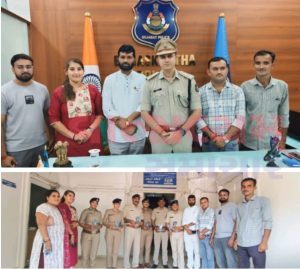 બનાસકાંઠા જિલ્લા પોલીસવાળા ની સૂચનાથી સાઇબર ક્રાઇમ જિલ્લાના વિવિધ શાળાઓ કોલેજો .પોલીટેકનીક .તેમજ અન્ય જગ્યાએ જનજાગૃતિ અભિયાન ભાગરૂપે આજ દિન સુધી 175 સેમીનાર યોજાયો હતા.બનાસકાંઠા જીલ્લામાં જુન-૨૦૨૧ થી સાયબર ક્રાઇમ પોલીસ સ્ટેશન કાર્યરત થયેલ હોઇ સાયબર ક્રાઇમ ટીમના એક્સપર્ટ સ્ટાફ દ્વારા ખૂબ જ સારી અને પ્રશંસનીય કામગીરી કરવામાં આવી રહેલ હોઇ જેને બિરદાવવા સારૂ બનાસકાંઠા સાયબર વોલેન્ટિયર ગૃપ દ્વારા સાયબર ક્રાઇમ ટીમના પોલીસ અધિકારી તથા પોલીસ કર્મચારીઓને મોમેન્ટો તથા પુષ્પગુચ્છ આપીને સન્માનિત કરવામાં આવેલ. જેમાં સાયબર ક્રાઇમ ટીમના (૧) PI શ્રી વી.એમ.ચૌધરી સર (ર)તત્તકાલિન PI શ્રી એસ.કે.પરમાર સર (૩) વાયરલેસ PSI શ્રી વી.બી.મકવાણા (૪) ASI હબીબભાઇ જે.સુણેસરા (૫) હેડ કોન્સ્ટેબલ શૈલેષભાઇ એસ. લુવા (૬) પોલીસ કોન્સ્ટેબલ મહેશભાઇ ડી.પરમાર (૭) મહિલા પો.કોન્સ. શિલ્પાબેન જે.રાણા (૮) મહિલા પો.કોન્સ. હેતલબેન ડી.મુડેઠીયા તથા (૯) ટેકનિકલ ઓપરેટર જીજ્ઞેશકુમાર એ.બારોટ નાઓને સન્માનિત કરવામાં આવેલ છે. જેમાં હેડ કોન્સ્ટેબલ શૈલેષભાઇ એસ.લુવા નાઓ દ્વારા બનાસકાંઠા જીલ્લાની કોલેજો, હાઇસ્કુલ, ITI તથા પોલીટેકનિક જેવી શૈક્ષણિક સંકુલો ખાતે જઇને આજદિન સુધીમાં કુલ – 175 સાયબર ક્રાઇમ લોકજાગૃતિ સેમિનારોનું આયોજન કરીને સાયબર ફ્રોડના બનાવો બાબતે લોકજાગૃતિ કેળવવાનું ઉમદા કાર્ય કરેલ છે સાથોસાથ પોલીસ કોન્સ્ટેબલ મહેશભાઇ ડી. પરમાર દ્વારા જીલ્લાના સાયબર ફ્રોડનો ભોગ બનેલ અરજદારોને બે કરોડથી વધુની રકમ પરત રિફંડ કરાવીની ખૂબ જ પ્રશંસનીય કામગીરી કરેલ છે તેમજ સાયબર ક્રાઇમ ટીમના અન્ય કર્મચારીઓ દ્વારા પણ ઉત્કૃષ્ટ કાર્ય કરેલ છે.ઉપરોક્ત તમામ પોલીસ અધિકારી તથા પોલીસ કર્મચારીઓનું સન્માન માન.શ્રી અક્ષય રાજ (IPS) પોલીસ અધિક્ષક, બનાસકાંઠા, પાલનપુર નાઓની ઉપસ્થિતીમાં સાયબર વોલેન્ટિયર ગૃપના શ્રી વિનોદભાઇ સી.ચૌધરી, કુ.નંદીની એસ.પટેલ, શ્રી હિમાંશુ એમ.પરમાર, શ્રી બળવંતભાઇ એચ.ઠાકોર તથા શ્રી સુંડાજી જે.ઠાકોર નાઓ દ્વારા આયોજન કરીને એસ.પી. કચેરી, જોરાવર પેલેસ ખાતે તમામ ટીમનું સન્માન કરવામાં આવેલ છે.