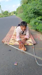 લાખણી ના વાસણા ના એક યુવાન ની દંડવત્ પ્રણામ ની માનતા
