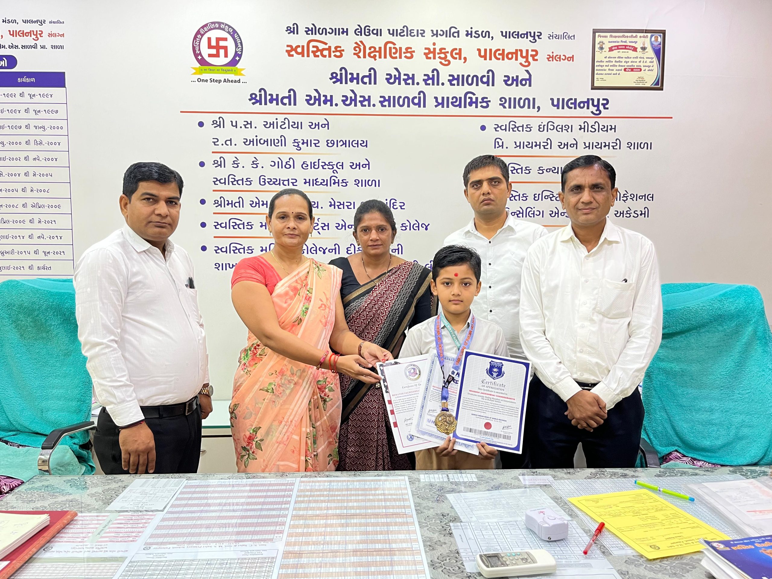 પાલનપુરના પ્રતિષ્ઠિત સ્વસ્તિક શૈક્ષણિક સંકુલ એ પોતાના સુવર્ણ જયંતિ વર્ષ દરમ્યાન એક અવિસ્મરણીય સિદ્ધિ હાંસલ કરી છે. સંસ્થાની સંલગ્ન સ્વસ્તિક સ્પોર્ટ્સ અકેડમી, પાલનપુરના હુનરબાજ સ્કેટિંગ ખેલાડીએ યુ.એન. બુક ઓફ વર્લ્ડ રેકોર્ડમાં સ્થાન મેળવી, સમગ્ર બનાસકાંઠા સહિત ગુજરાતનું નામ રોશન કર્યું છે.