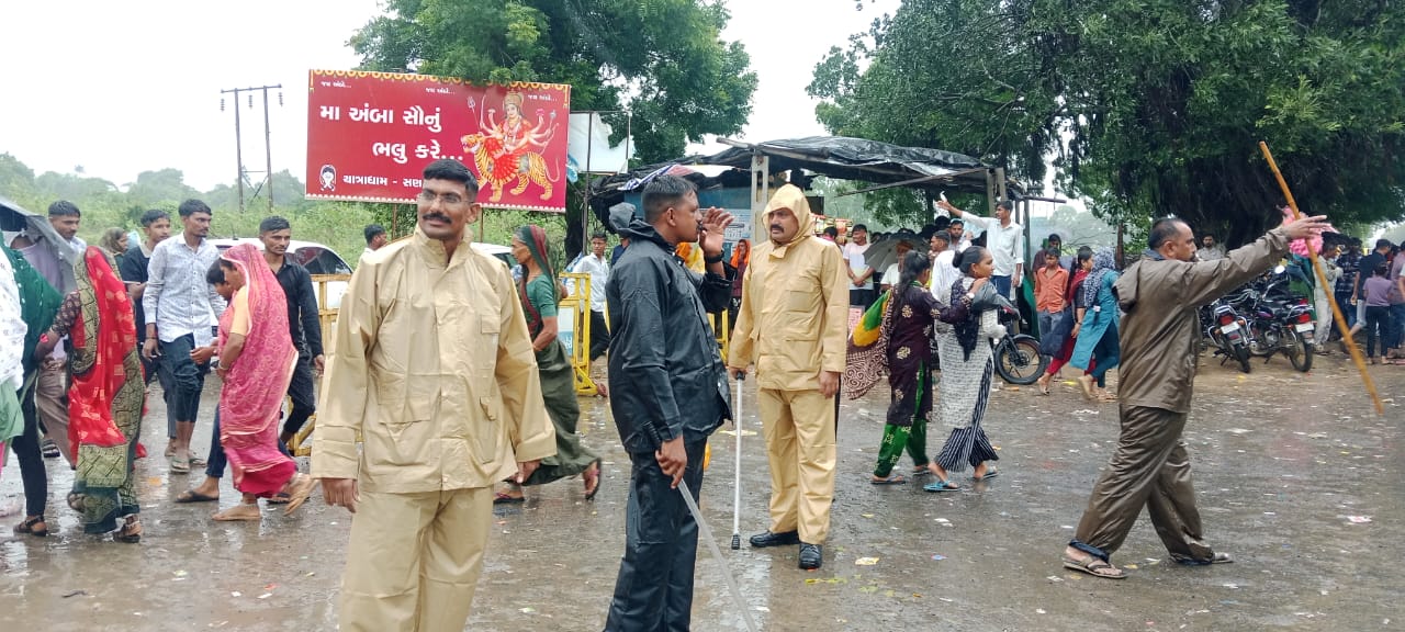 મીની અંબાજી સણાદર ધામમાં માઇ ભક્તોની સેવામાં સાર્વત્રિક વરસાદ વચ્ચે પણ દિયોદર પોલીસ ટીમની ખડેપગે