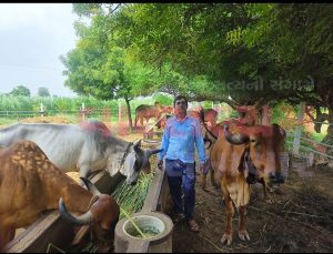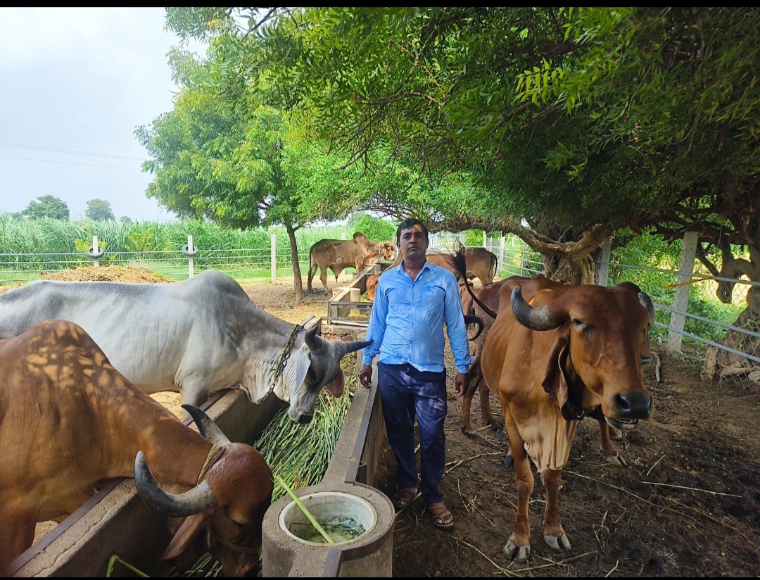 સરકારશ્રીની દેશી ગાય નિભાવ યોજના તથા પંચસ્તરીય મોડેલ ફાર્મ સહાય થકી બાગાયતી પાકોનું વાવેતર કર્યું પપૈયા, મગફળી, જામફળ, ચીકુ, આંબા તેમજ ડુંગળીની ખેતી થકી વાર્ષિક ૪.૭૦ લાખનો નફો મેળવ્યો પ્રાકૃતિક કૃષિ એ આજના સમયની તાતી જરૂરિયાત છે. પ્રાકૃતિક કૃષિને વેગ આપવા માટે રાજ્ય સરકારશ્રી દ્વારા અનેક પ્રયાસો હાથ ધરાયા છે જેના પરિણામે આજે રાજ્યના અનેક ખેડૂતો આ કૃષિ તરફ વળ્યા છે. તદ્દન નજીવા ખર્ચે થતી પ્રાકૃતિક કૃષિના અનેક ફાયદાઓ છે. ખેડૂતોને આત્મનિર્ભર બનાવવા માટે પ્રાકૃતિક કૃષિ એ વિકલ્પ તરીકે ઉભરી આવેલ છે. રાજ્યમાં વધુમાં વધુ ખેડૂતો પ્રાકૃતિક કૃષિ કરતા થાય તે માટે રાજ્યપાલશ્રી આચાર્ય દેવવ્રતજી અને મુખ્યમંત્રીશ્રી ભૂપેન્દ્રભાઈ પટેલના નેતૃત્વ અને માર્ગદર્શન હેઠળ ખેડૂતો માટે વિવિધ સહાય સહિત અનેક પ્રયાસો હાથ ધરાયા છે. બનાસકાંઠા જિલ્લાના ભાભર તાલુકાના રૂણી ગામના ખેડૂત શ્રી વિનોદભાઈ ચૌધરી છેલ્લા ત્રણ વર્ષથી દેશી ગાય આધારિત પ્રાકૃતિક કૃષિને અપનાવીને અન્ય ખેડૂતો માટે પ્રેરણા સ્ત્રોત બન્યા છે. તેમણે પોતાના ખેતરને પ્રાકૃતિક મોડેલ ફાર્મ બનાવ્યું છે તથા બાગાયતી પાકોનું પણ વાવેતર કર્યું છે.