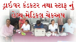 ઝઘડિયા એસટી ડેપો ખાતે ડ્રાઇવર કંડકટર તથા સ્ટાફ નું હેલ્થ મેડિકલ ચેકઅપ કરવામાં આવ્યું
