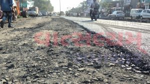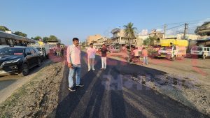રાજપારડી ચાર રસ્તા નજીક માર્ગનું પેચવર્ક શરૂ કરતાં વાહન ચાલકોને કઈક અંશે રાહત મળશે