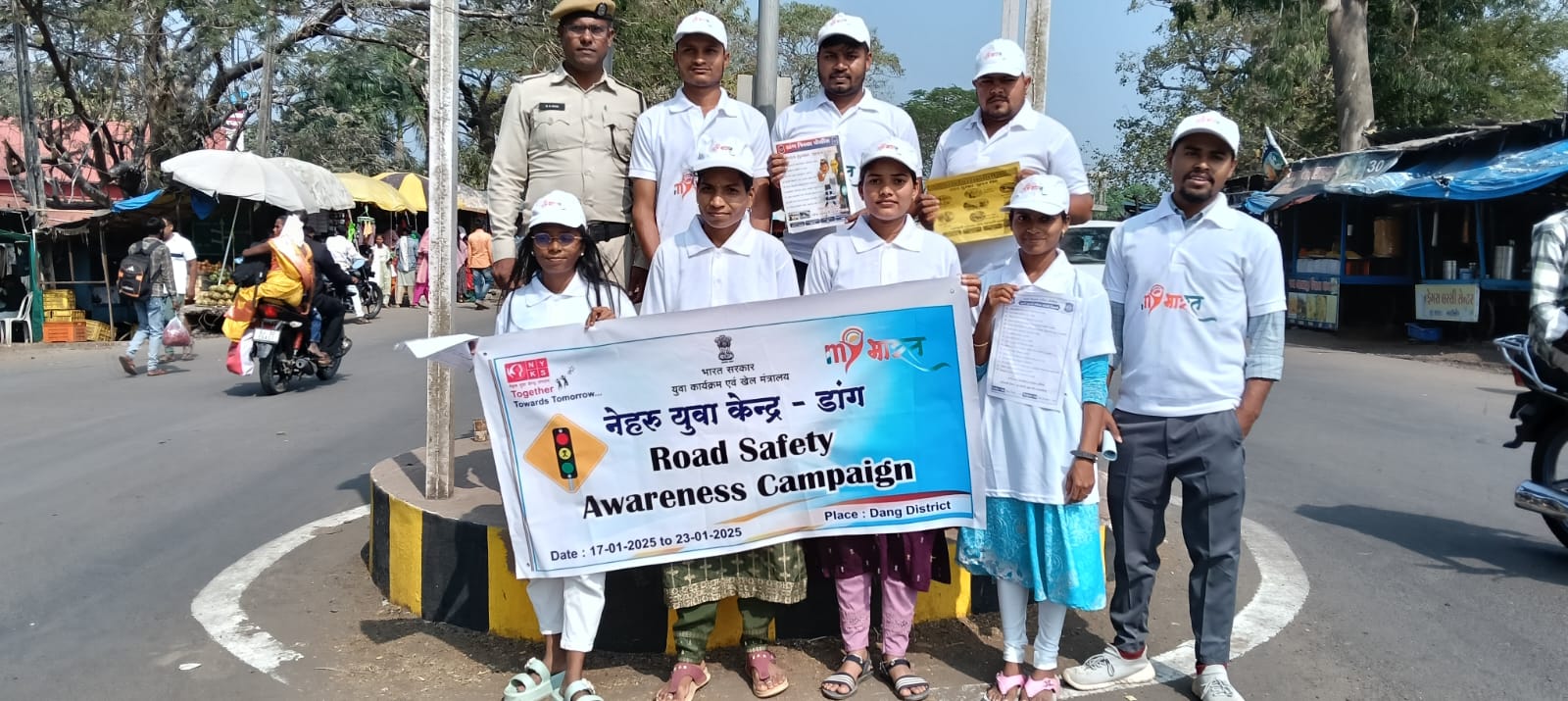 માર્ગ સલામતી માસ – ૨૦૨૫ ની ઉજવણી અંતર્ગત નેહરુ યુવા કેન્દ્ર ડાંગ આહવા દ્વારા આર.ટી.ઓ કચેરી વઘઇના માર્ગદર્શન હેઠળ આહવા ખાતે વાહન ચાલકોને માર્ગ સલામતી વિશે જાણકારી આપી ટ્રાફિક નિયમન વિશે માહિતગાર કર્યા હતાં.