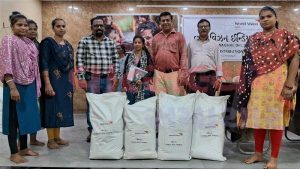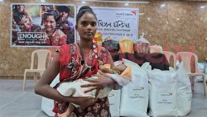 ડ્રાય રેશન કીટ’ કે જેમા બે પ્રકારની દાળ, નાગલી, ગોળ, ચોખા, ખાવાનુ તેલ અને સીંગદાણા જેવા ખાદ્ય પદાર્થો વર્લ્ડ વિઝન ઇન્ડિયાના વઘઈ તાલુકાના કાર્યવિસ્તારના ૪૧ ગામો પૈકી ૧૮ ગામની ૩૭ જેટલી બહેનોને અર્પણ કરાઈ હતી.
