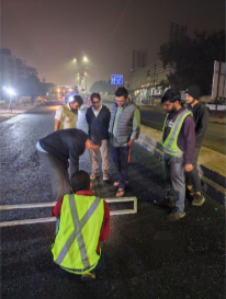 જિલ્લા કલેકટર શ્રી પ્રવીણ ચૌધરીએ ગઈકાલે અડધી રાત્રે ૧૨-૩૦ કલાકે આકસ્મિક રોડ બનાવવાની કામગીરીનું નિરીક્ષણ કર્યું હતું. આ સમયે કલેકટરે રોડનું રીસરફેસિંગ કામ બરાબર થાય છે કે કેમ, પ્રોપર થીકનેસ છે કે નહીં, રોલિંગથી કોમ્પેકશન થાય છે કે નહીં, તે અંગે જાણકારી મેળવી હતી અને કેમ્બર બોર્ડ મૂકીને કેમ્બર મેન્ટેઈન થાય છે એ કેમ? તેની પણ જાણકારી મેળવી હતી.