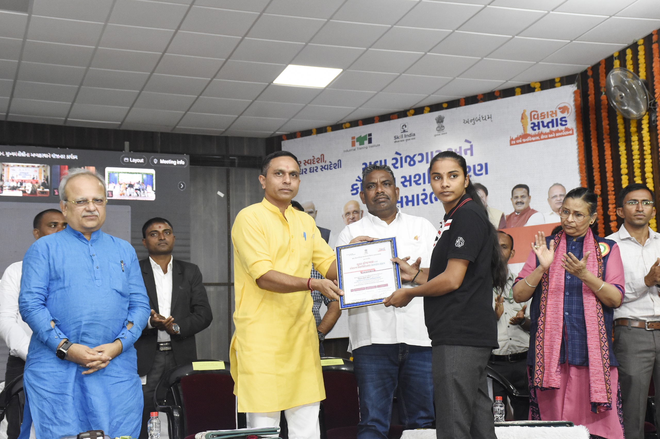 યુવાઓએ પોતાનામાં રેહલી ટેક્નીકલ સ્કીલને વિકસાવવાની જરૂર છે-આયોજન પંચ ચેરમેન યમનભાઈ વ્યાસ આઈ.ટી.આઈ. ના તાલીમાર્થીઓને પ્રોવિઝનલ ઓફર લેટર (POL) એનાયત’ અને ‘ઉદ્યોગો સાથે આઈટીઆઈના અપગ્રેડેશન માટે MOU’ કરવામાં આવ્યા ‘વિકાસ સપ્તાહ’ની ઉજવણી અંતર્ગત દાહોદ જિલ્લામાં સ્વામી વિવેકાનંદ હોલ, દાહોદ ખાતે આયોજન પંચ ચેરમેન યમનભાઈ વ્યાસના અધ્યક્ષ સ્થાને રોજગાર વિનિમય કચેરી દ્વારા આયોજિત જિલ્લા કક્ષાના યુવા રોજગાર અને કૌશલ્ય સશક્તિકરણ સમારંભ યોજવામાં આવ્યો હતો. જે કાર્યક્રમ અન્વયે ૭૨ જેટલા યુવાઓને GSRTC દ્વારા એપ્રેન્ટીસ ભરતી માટેના નિમણુક પત્રો એનાયત કરવામાં આવ્યા. વડાપ્રધાન નરેન્દ્રભાઈ મોદીના નેતૃત્વમાં – ૨૪ વર્ષ જન-વિશ્વાસ, સેવા અને સમર્પણ અન્વયે યોજાયેલ વિકાસ સપ્તાહ પ્રસંગે ચેરમેન યમનભાઈ વ્યાસએ જણાવ્યું હતું કે, રાજ્યના સર્વાંગી વિકાસની દિશામાં ઝડપી પરિણામો મેળવવા માટે છેવાડાના માનવી સુધી વિકાસના ફળ પહોંચે એ માટે માત્ર ખેતી પર નિર્ભર ન રહેતા ઔદ્યોગિક વિકાસ તરફ લક્ષ્ય કેન્દ્રિત કરવામાં આવી રહ્યું છે. જેથી સૌ યુવાઓએ પોતાનામાં રેહલી ટેક્નીકલ સ્કીલને વિકસાવવાની જરૂર છે. સરકારના સતત પ્રયત્નો થકી સકારાત્મક પરિવર્તન આવ્યું છે. એમ કહેતા એમણે રોજગારી મેળવનાર યુવાનોને અભિનંદન પાઠવ્યા હતા.કલેક્ટર યોગેશ નિરગુડેએ આ પ્રસંગે કહ્યું હતું કે, યુવાનોએ રોજગારી મળે એ માટે તેમજ તેમનામાં રહેલા ગુણો-કલાને વિકસાવવામાં રોજગાર વિભાગ સતત પ્રયત્નશીલ રહ્યો છે. આજના યુવાઓએ ઉત્કૃષ્ટતા સાથે પોતાની કામગીરી કરવાની છે. પોતાના પગભર થઈને કંપની સામે ચાલીને આપણી પાસે આવે એવી સ્કીલ ડેવલપ કરવાની છે. યુવાઓએ સપના મોટા જોવા જોઈએ એમ કહેતા એમણે સરકાર દ્વારા આપવામાં આવતી સબસીડી વિશે પણ માહિતી આપી હતી.દાહોદ ધારાસભ્ય કનૈયાલાલ કિશોરીએ જણાવ્યું હતું કે, સરકારના સતત પ્રયત્નો થકી દાહોદમાં પણ વિકાસ થઇ રહ્યો છે. પૂર્ણ વિકસિત ભારતના વડાપ્રધાનશ્રીના સંકલ્પને સાકાર કરવા માટે આપણે સૌએ સ્વદેશી અપનાવી વોકલ ફોર લોકલ મંત્રને સાર્થક કરવાનો છે.આ પ્રસંગે સર્વે ઉપસ્થિતોએ ગુજરાતના મુખ્યમંત્રી ભૂપેન્દ્ર પટેલની પ્રેરક ઉપસ્થિતિમાં યોજાયેલ રાજ્યકક્ષાના કાર્યક્રમનું જીવંત પ્રસારણ નિહાળ્યું હતું. મહાનુભાવોની ઉપસ્થિતિમાં ‘રોજગાર પત્ર તથા આઈ.ટી.આઈ. ના તાલીમાર્થીઓને પ્રોવિઝનલ ઓફર લેટર (POL) એનાયત’ અને ‘ઉદ્યોગો સાથે આઈટીઆઈના અપગ્રેડેશન માટે MOU’ કરવામાં આવ્યા હતા. આ કાર્યકમ દરમ્યાન ગરબાડા ધારાસભ્ય મહેન્દ્રભાઈ ભાભોર, જિલ્લા રોજગાર અધિકારી દાહોદ આઈટીઆઈના પ્રિન્સીપાલઓ , લાભાર્થીઓ તેમજ તાલીમાર્થીઓ ઉપસ્થિત રહ્યા હતા
