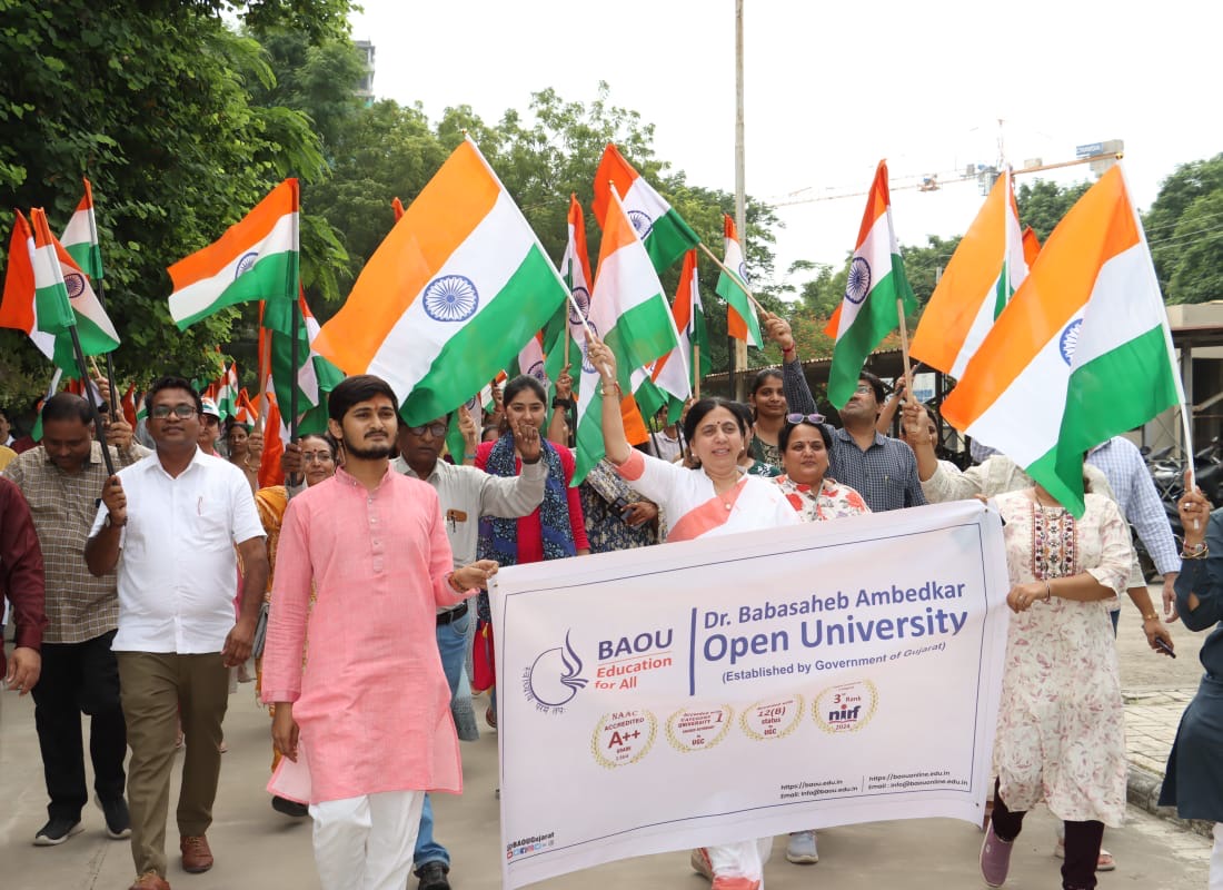 ડૉ. બાબાસાહેબ આંબેડકર ઓપન યુનિવર્સિટી દ્વારા ‘હર ઘર તિરંગા’ અંતર્ગત ભવ્ય તિરંગાયાત્રાનું આયોજન