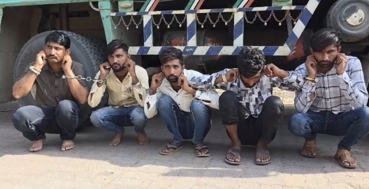 અંકલેશ્વરમાં મુલદ ટોલ પ્લાઝાના બેરીકેડ તોડનારા 5 આરોપીઓ ઝડપાયા:પોલીસે 4 ટ્રકચાલક અને એક ટ્રક માલિકનું જાહેર સરઘસ કાઢી માફી મંગાવી