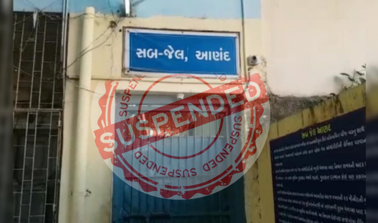 જે વિજીટ દરમ્યાન આણંદ સબજેલમાં ત્રણ મહિલાઓ હાજર મળી આવેલ. જે અંગે તપાસ કરતા કોઇપણ સક્ષમ અધિકારીની મંજુરી વગર અનઅધિકૃત રીતે સબજેલમાં આરોપીઓને મળવા માટે પ્રવેશ કરેલ હોવાનુ જણાઇ આવેલ હોઇ આ બાબત ખુબજ ગંભીર હોઇ જેલગાર્ડની ફરજ દરમ્યાન ગેરકાયદેસર રીતે બહારના માણસોને જેલમાં પ્રવેશ આપી એક જવાબદાર પોલીસ કર્મચારી તરીકેની ફરજમાં ગંભીર બેદરકારી અને નિષ્કાળજી દાખવેલ હોય જેલગાર્ડ ફરજ ઉપરના (૧) આ.હે.કો. ભાનુભાઈ અંબાલાલ (૨) અ.હે.કો. કમલેશભાઇ નારણભાઈ (૩) અ.પો.કો. શેતલકુમાર દિનેશભાઈ (૪) અ.પો.કો. દક્ષેશકુમાર હિંમતભાઇ ચારેય પોલીસ કર્મચારીઓને જી.જી.જસાણી, પોલીસ અધિક્ષક, આણંદ નાઓ દ્વારા ફરજ મોકુફી હેઠળ મુકવામાં આવેલ છે.