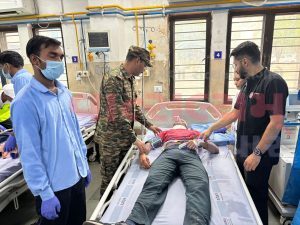 “એર રેઇડ”માં જવાનોના પરિવારજનોને મિલિટરી સ્ટેશન ખાતે પ્રાથમિક સારવાર બાદ જી.કે. જનરલ હોસ્પિટલ ખસેડાયા.