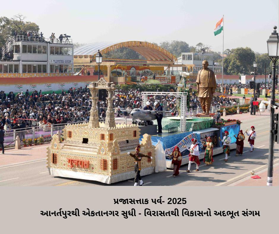 * ૨૦૨૫માં “આનર્તપુરથી એકતાનગર સુધી – વિરાસતથી વિકાસનો અદભૂત સંગમ” ટેબ્લો દ્વારા સતત ત્રીજી વાર પોપ્યુલર ચોઈસ કેટેગરીમાં દેશની જનતાની પ્રથમ પસંદ બનતું ગુજરાત