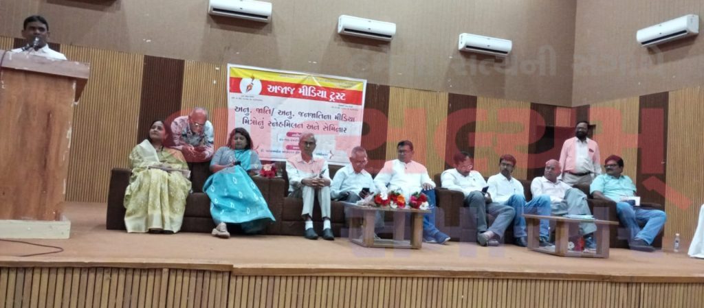 ગુજરાતના જાણીતા લેખક અને ચિંતક ચંદુભાઈ મહેરીયા ની અધ્યક્ષતામાં યોજાયેલ આ સ્નેહ મિલન અને સેમિનારમાં વક્તા અને જાણીતા કર્મશીલ રાજુભાઈ સોલંકી તેમજ અજાજના પેટ્રન મૂળચંદ રાણા, સ્થાપક પ્રમુખ નટુભાઈ પરમાર, વર્તમાન પ્રમુખ રમેશ સોલંકી, મહામંત્રી ભરત દેવમણી,હિતેન્દ્ર પીઠડીયા, યોગીતાબેન પટેલ, અર્ચનાબેન પરમાર સહિત અજાજ ના હોદ્દેદારો તેમજ મોટી સંખ્યામાં સમગ્ર ગુજરાતમાંથી અજાજના સભ્ય પત્રકાર ભાઈઓ, બહેનો ઉપસ્થિત રહ્યા હતા.