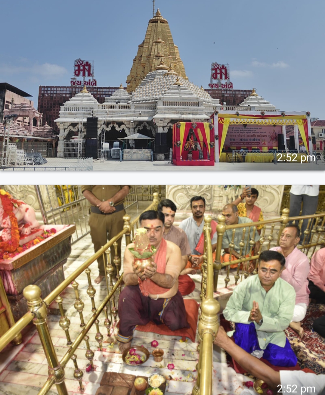 માં શક્તિની આરાધનાનું પર્વ એટલે નવરાત્રિ પર્વ. નવરાત્રિ પર્વ શરૂ થતાં જ શક્તિપીઠ અંબાજી માં અંબાના દર્શન કરવા ઉમટ્યા છે. આજે અંબાજી મંદિરમાં નવરાત્રિના પ્રથમ દિવસે શાસ્ત્રોક્ત મંત્રોચાર સાથે ઘટ સ્થાપન વિધિ કરી નવરાત્રીનો પ્રારંભ કરવામાં આવ્યો.નવરાત્રિના પહેલા દિવસે જ અંબાજી મંદિરમાં ઘટ સ્થાપનની વિધિ કરવામાં આવી. દર વર્ષે નવરાત્રીના પ્રારંભે શાસ્ત્રોક્ત મંત્રોચ્ચાર વચ્ચે માતાજીના સભા મંડપમાં ઘટ સ્થાપના કરવામાં આવી. જેમાં મંદિરના વહીવટદાર કૌશિકભાઈ મોદી, અંબાજી મંદિર સ્ટાફ અને અંબાજી મંદિરના પૂજારીઓ ઉપસ્થિત રહ્યા. ઘટસ્થાપના વિધિમાં સાત ધાન્યને કાંપની માટીમાં રોપવામાં આવ્યા છે. માન્યતા પ્રમાણે ઘટ સ્થાપન વિધિમાં તૈયાર થયેલા ધાન્યના વિકાસના આધારે આગામી વર્ષ કેવું રહેશે તે નક્કી કરવામાં આવે છે.આજે ઘટ સ્થાપન પ્રસંગે અંબાજી મંદિરના વહીવટદા કૌશિકભાઈ મોદીએ જણાવ્યું હતું કે આજે નવરાત્રીના પ્રારંભે શક્તિપીઠ અંબાજી મંદિરમાં ઘટ સ્થાપન થયું છે. શાસ્ત્રોક્ત વિધિ સાથે આજે ઘટ સ્થાપન કરવામાં આવ્યું છે. અંબાજીમાં માં શક્તિનું હૃદય બિરાજમાન છે ત્યારે માં શક્તિ સૌનું કલ્યાણ કરે તેવી આરાધના સાથે આજે મંદિરના સભામંડપમાં ઘટ સ્થાપન વિધિ પૂર્ણ કરાઈ છે. શક્તિપીઠ અંબાજી અનેક ભક્તોની આસ્થાનું કેન્દ્ર છે. આજે નવરાત્રી પર્વનો પ્રારંભ તા મોટી સંખ્યામાં લોકો માં અંબાના દર્શન કરવા માટે ઉમટ્યા હતા. દૂરદૂરથી નવરાત્રિ નિમિત્તે આવેલા ભકતોએ માં અંબાના દર્શન કરી ધન્યતા અનુભવી હતી. ભક્તોની ભીડ વચ્ચે પણ માં અંબાના શાંતિપૂર્વક દર્શન થતાં ભાવિકોએ સુચારૂ વ્યવસ્થા બદલ અંબાજી મંદિર દેવસ્થાન ટ્રસ્ટનાનો આભાર માન્યો હતો.નવરાત્રિ નિમિત્તે આગામી દિવસોમાં પણ અંબાજીમાં ભક્તોની ભીડ યથાવત રહેવાની છે. ત્યારે અંબાજી મંદિર દેવસ્થાન ટ્રસ્ટ દ્વારા ભક્તો માં અંબાના દર્શન શાંતિથી કરી શકે તે માટે તમામ તૈયારીઓ અને પૂરતા સ્ટાફની વ્યવસ્થા કરવામાં આવી છે. નવરાત્રી નિમિત્તે મંદિરન ભવ્ય લાઇટિંગ તેમજ શણગાર કરવામાં આવ્યો છે.