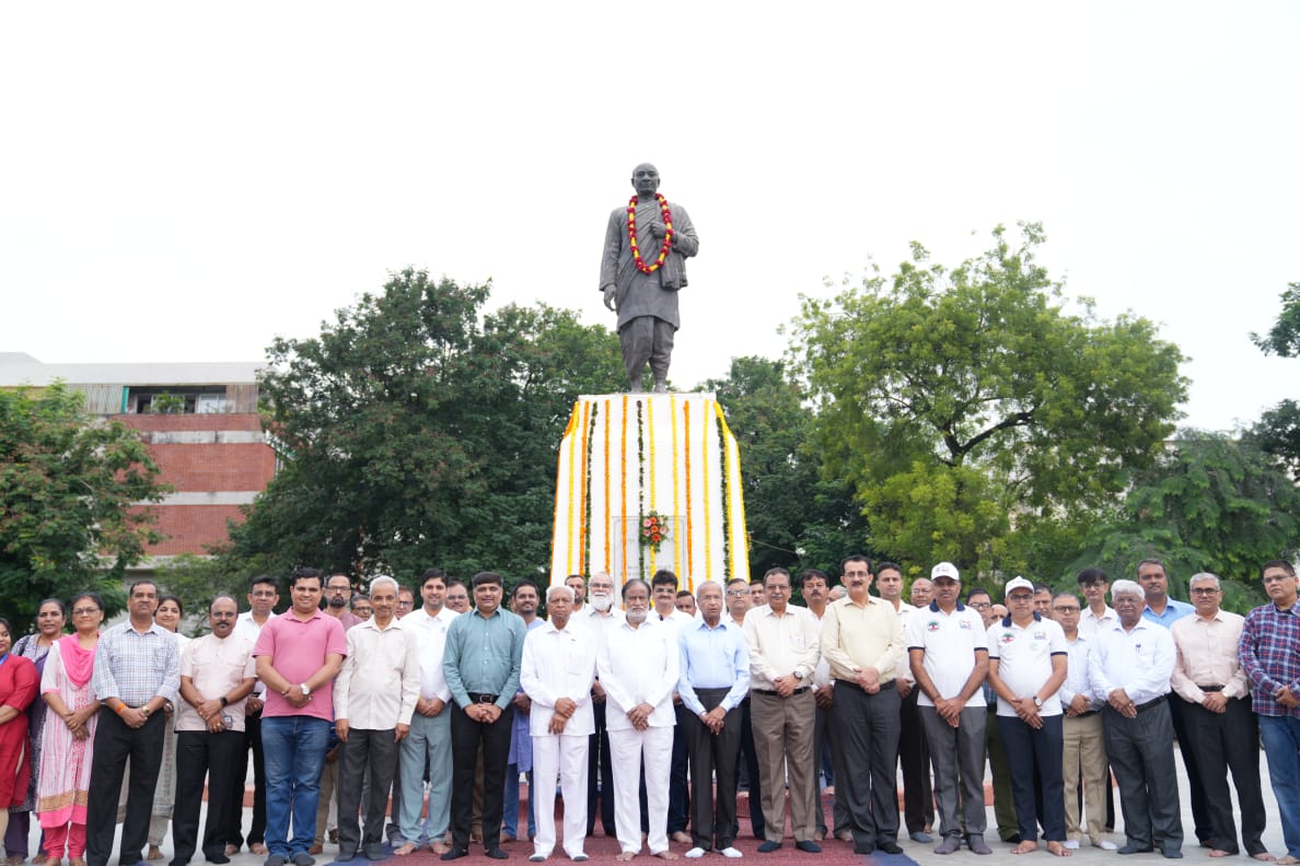 સીવીએમ યુનિવર્સિટી દ્વારા ભારતના લોહપુરુષ અને પ્રથમ ગૃહમંત્રી સરદાર વલ્લભભાઈ પટેલની જન્મ જયંતી નિમિત્તે ‘રાષ્ટ્રીય એકતા દિવસ’ની ગૌરવપૂર્ણ ઉજવણી કરવામાં આવી હતી. આ અવસર પર દેશની અખંડિતતા અને એકતા જાળવવામાં સરદાર પટેલના અમૂલ્ય યોગદાનને યાદ કરીને તેમને શ્રદ્ધાંજલિ અર્પણ કરવામાં આવી હતી. ચારુતર વિદ્યામંડળ અને યુનિવર્સિટીના પદાધિકારીઓ, વિવિધ ફેકલ્ટીના ડીન, યુનિવર્સિટી હેઠળની તમામ કોલેજોના પ્રિન્સિપાલશ્રીઓ, ડીપાર્ટમેન્ટના વડા તથા મોટી સંખ્યામાં અધ્યાપકો અને બિન-શૈક્ષણિક સ્ટાફ આ કાર્યક્રમમાં ઉત્સાહભેર જોડાયા હતા. સૌએ એકસાથે એકતા અને રાષ્ટ્રભાવનાના શપથ ગ્રહણ કર્યા હતા, જેમાં દેશની એકતા, અખંડિતતા અને સુરક્ષા જાળવી રાખવાનો સંકલ્પ લેવામાં આવ્યો હતો. આ પ્રસંગે સરદાર પટેલ યુનિવર્સિટીના કુલપતિ શ્રી પ્રોફેસર (ડૉ.) નિરંજન પટેલ અને રજિસ્ટ્રાર શ્રી ડૉ. ભાઈલાલભાઈ પટેલની વિશેષ ઉપસ્થિતિ રહી.