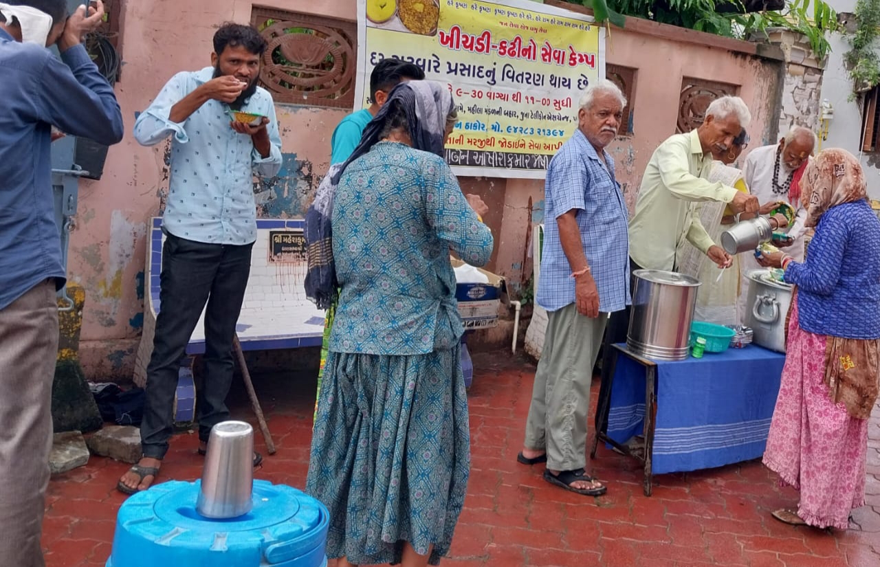 પાલનપુરમાં દર ગુરૂવારે ખીચડી -કઢી ના પ્રસાદ ના વિતરણ દાતા ના સહયોગથી થકી સેવા કરતા લોકસેવક હસમુખભાઈ ચૌહાણ