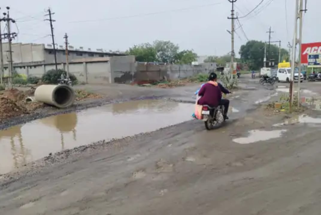 વઢવાણના મુળચંદ રોડ પર મસમોટા ખાડા અને પાણી ભરાતા વાહન ચાલકો પરેશાન