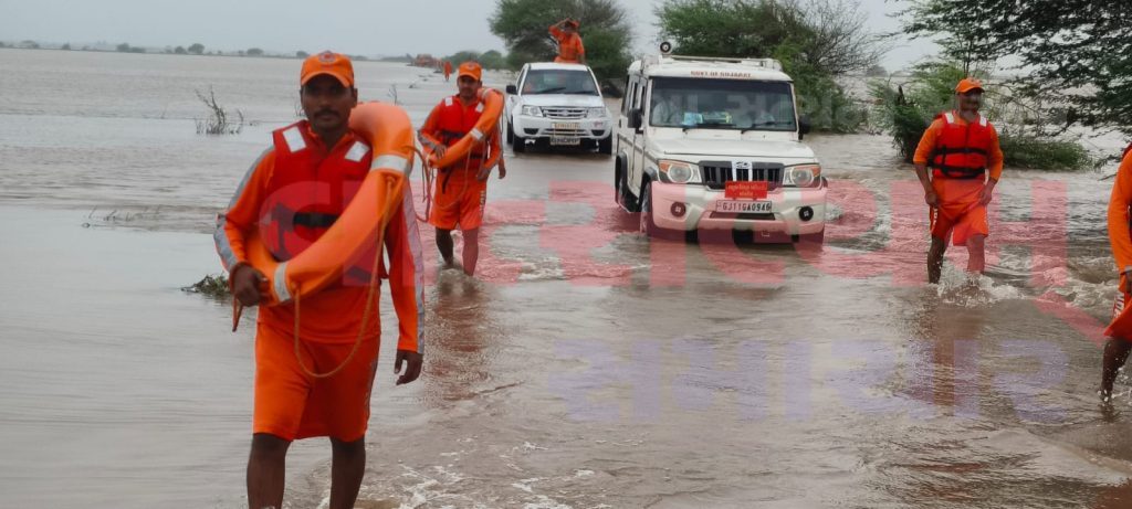 જૂનાગઢ તા.૨૬ જુલાઈ, ૨૦૨૪ (શુક્રવાર) જૂનાગઢ જિલ્લામાં પડેલા અવિરત વરસાદના લીધે ઘણા ગામો સંપર્ક વિહોણા થતાં જોવા મળ્યા હતા, જેમાં ગ્રામ્ય વિસ્તારના રસ્તા પર પાણી ફરી વળ્યુ હોવાથી વાહન અવરજવર થઈ શકે તેમ નથી ત્યારે જૂનાગઢ જિલ્લા કલેક્ટર શ્રી અનિલકુમાર રાણાવસિયાના માર્ગદર્શન હેઠળ સંપર્ક વિહોણા ગામના લોકોને કોઈ તકલીફ ન પડે તે માટે યોગ્ય કાર્યવાહી કરવા સંબંધિત અધિકારીશ્રીઓને સૂચના આપવામાં આવી હતી. જેના ભાગરુપે માંગરોળ તાલુકામાં એન.ડી.આર.એફ.ની ટીમને સાથે રાખીને સંબંધિત અધિકારીશ્રીઓ દ્વારા માંગરોળ તાલુકાના સંપર્ક વિહોણા ગામો જેવા કે મેખડી, સામરડા, ઘોડાદર સરમા તથા બગસરા ઘેડના અંતરિયાળ વિસ્તારમાં મુલાકાત લેવામાં આવી હતી. આ પંથકમાં વાડી વિસ્તારમાં રહેતા લોકો સુધી એન.ડી.આર.એફ.ની બોટમાં જઈને તપાસ કરવામાં આવી હતી અને લોકોને સહાનુભૂતિ પૂર્વક મદદની જરુરિયાત હોય તો તેમના સુધી જઈ લોકો સુધી તમામ મદદ પહોંચાડવાની ખાતરી આપી હતી. અંતરિયાળ વિસ્તારમાં અંદાજે ૨૦૦ જેટલા ફૂડ પેકેટનું વિતરણ કરવામાં આવ્યું હતું. અંતરિયાળ વિસ્તારમાં વસવાટ કરતા ગામ લોકોને જરુર જણાય ત્યારે તાલુકા ઈમરજન્સી સેન્ટરનો તાત્કાલિક સંપર્ક કરવા જણાવવામાં આવ્યું હતું. આ મુલાકાત સમયે હાલમાં માંગરોળ તાલુકાના ઘેડ વિસ્તારના ગામો જે સંપર્ક વિહોણા છે તેમાં કોઈ મોટી જાનહાની કે અન્ય કોઈ સમસ્યા જોવા મળી ન હતી.