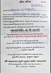 તેમજ સદગતને શ્રદ્ધાંજલિ અર્પણ કરવા પણ સૌ સગા સ્નેહીઓ સહકર્મચારીઓ જ્ઞાતિ સમાજના આગેવાનો સભ્યો સૌ ઉપસ્થિત રહ્યા હતા