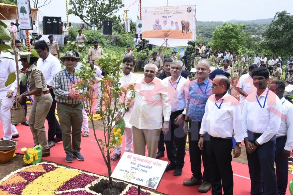 ‘એક પેડ મા કે નામ’ અભિયાન અંતર્ગત મુખ્યમંત્રીશ્રીની સાથે જૂનાગઢ જિલ્લા પંચાયતના પ્રમુખ શ્રી હરેશભાઈ ઠુંમર, ગીર સોમનાથ જિલ્લા પંચાયતના પ્રમુખ શ્રીમતી મંજૂલાબેન મૂછાર, ધારાસભ્ય સર્વશ્રી દેવાભાઈ માલમ, ભગવાનજીભાઈ કરગઠિયા, ભગવાનભાઈ બારડ, અરવિંદભાઈ લાડાણી, કલેકટર શ્રી અનિલકુમાર રાણાવસિયા, વન વિભાગના ઉચ્ચ અધિકારી સર્વશ્રી નિત્યાનંદ શ્રીવાસ્તવ, ડો. યુ. ડી. સિંહ, પ્રશાંત તોમર સહિતના અધિકારીઓ-પદાધિકારીઓએ વૃક્ષારોપણ કર્યું હતું.