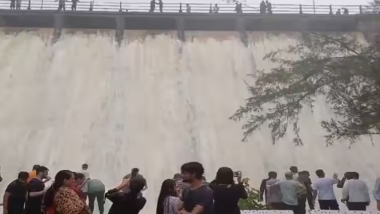 ગિરનાર પર્વત પર ભારે વરસાદ થતા વિલિંગ્ડન ડેમ ઓવરફ્લો થયો