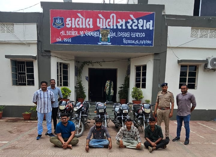 કાલોલ તેમજ હાલોલ ના અલગ અલગ વિસ્તારમાંથી ચોરી થયેલ પાંચ બાઇક સાથે ચાર આરોપી ને ઝડપી પાડતી કાલોલ પોલીસ