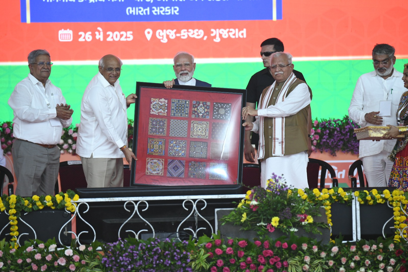 ‘ઓપરેશન સિંદૂર’ની સફળતા બાદ પ્રથમ વખત કચ્છની ધીંગી ધરા પર રૂ. ૫૩,૦૦૦ કરોડથી વધુના વિકાસકાર્યોની ભેટ આપવા પધારેલા પ્રધાનમંત્રી નરેન્દ્ર મોદીને આવકારવા ભુજના હિલગાર્ડન પાસેથી કોલેજ રોડ પર બનાવવામાં આવેલા વિશાળ સભાખંડ સુધી એક કિલોમીટર લાંબો ભવ્ય રોડ-શો યોજાયો હતો.