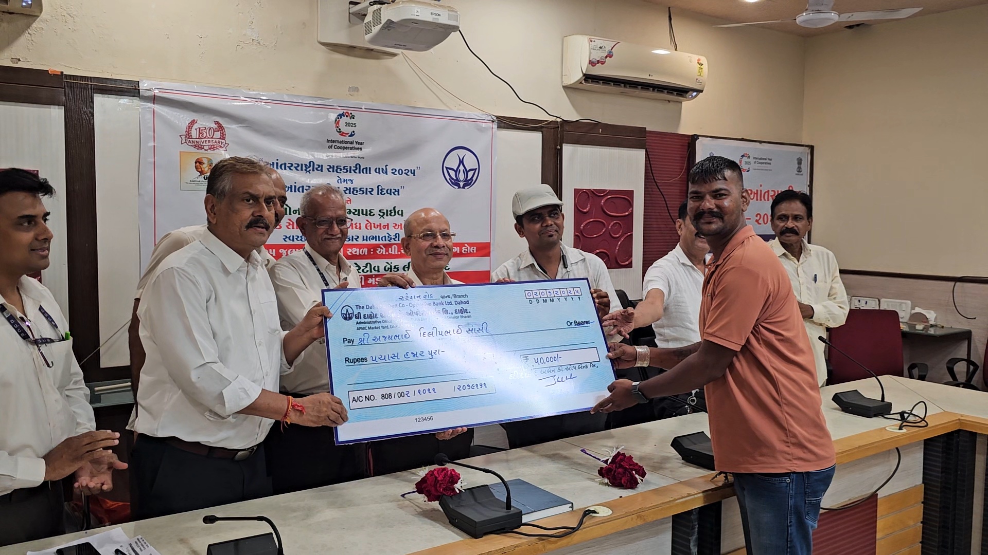 “આંતરરાષ્ટ્રીય સહકારી વર્ષ-૨૦૨૫” ની ઉજવણી કરવામાં આવી તા.૦૨.૦૭.૨૦૨૫ના રોજ APMC -દાહોદ સમય:-૧૨:૩૦ કલાકે માનનીય જિલ્લા રાજીસ્ટાર બી.સી ચૌધરી ના અધ્યક્ષસ્થાને રાખવામા આવેલ છે, જેમાં દાહોદ જિલ્લાની અર્બન બેન્કોના તમામ મેનેજરઓ તથા ક્રેડીટ સોસાયટી તમામ મેનેજરઓ મોટી સંખ્યામાં અર્બન બેન્કોના સબાસદો હાજર રહેલ અને બેન્કો તથા ક્રેડીટ સોસાયટી દ્વારા વિવિધ વ્યવસાય માટે કુલ-૧૫ લાભાર્થીઓને રૂપિયા ૧,૦૬,૪૨૦૦૦/- હજાર લોનના ચેક વિતરણ કરવામાં આવ્યૂ હતું સમગ્ર મેળા નું આયોજન યુ.બી.રાઠોડ અધિક્ષક અને મહેશ વસૈયા મદદનિશ સહકારી અધિકારી દ્વારા સફળ બનાવેલ હતો
